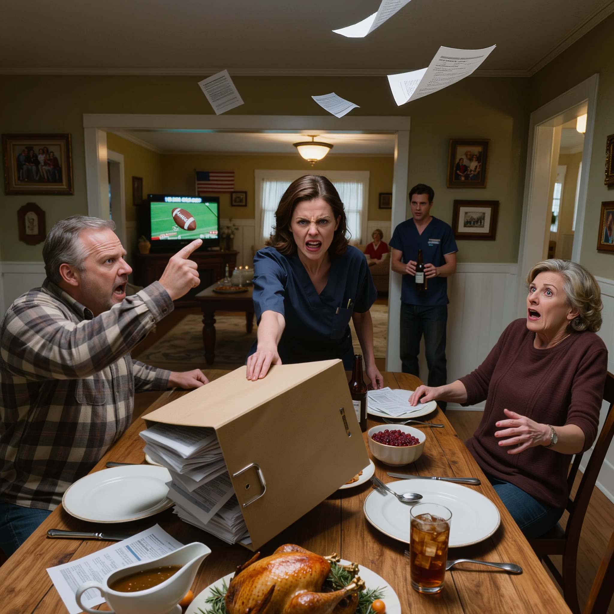 En bout de table, l’oncle Thomas s’éclaircit la gorge. Sa voix, comme toujours, portait comme s’il pensait que ses cordes vocales avaient été façonnées par un conseil d’administration. Il tapota sa cuillère contre un verre en cristal, le son clair et cristallin perçant aisément le brouhaha ambiant.