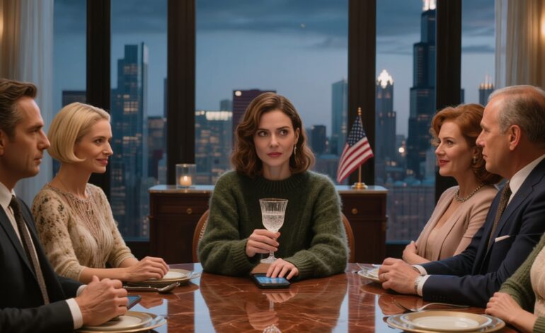 Dix minutes plus tard, Luna se retrouva au centre du dîner de répétition, entourée de Robert, Patricia, Victoria et Derek qui formaient un demi-cercle. Les autres invités commencèrent à remarquer l’agitation, les conversations s’éteignant à mesure que les regards se tournaient vers elle.