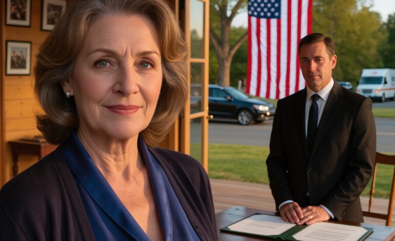 Evelyn Reed se tenait sur le perron, tenant un grand sac à vêtements et souriant chaleureusement.